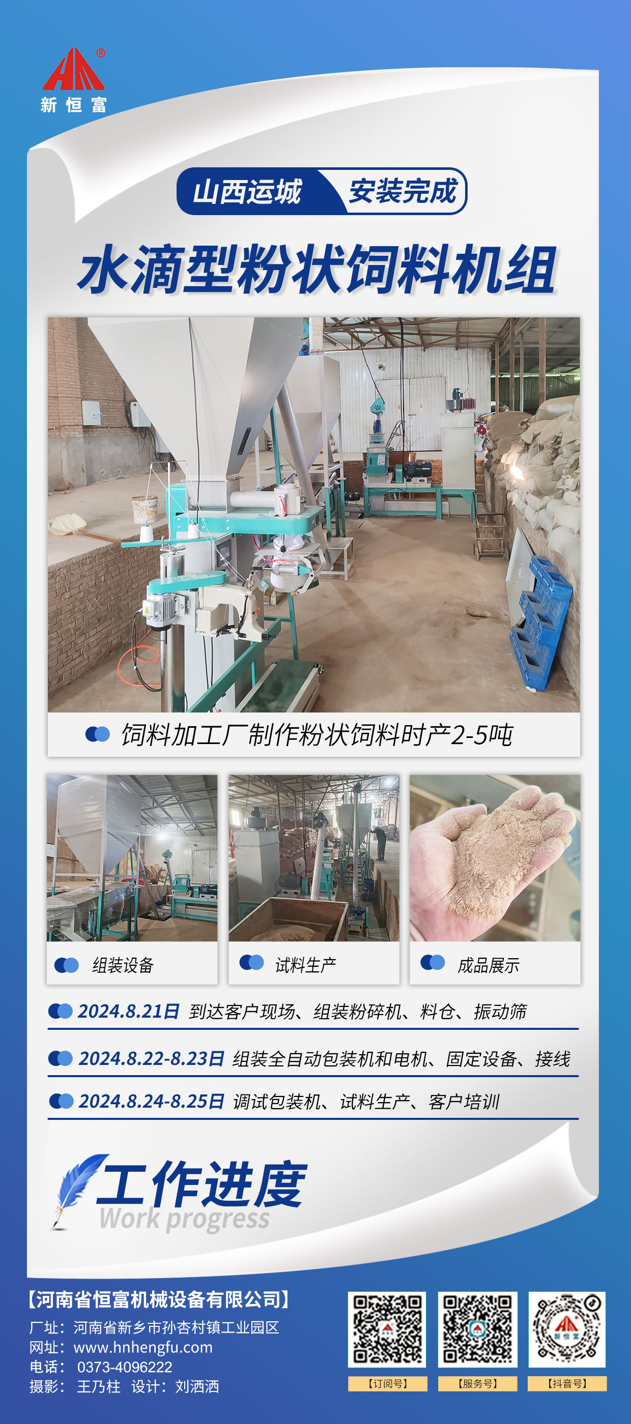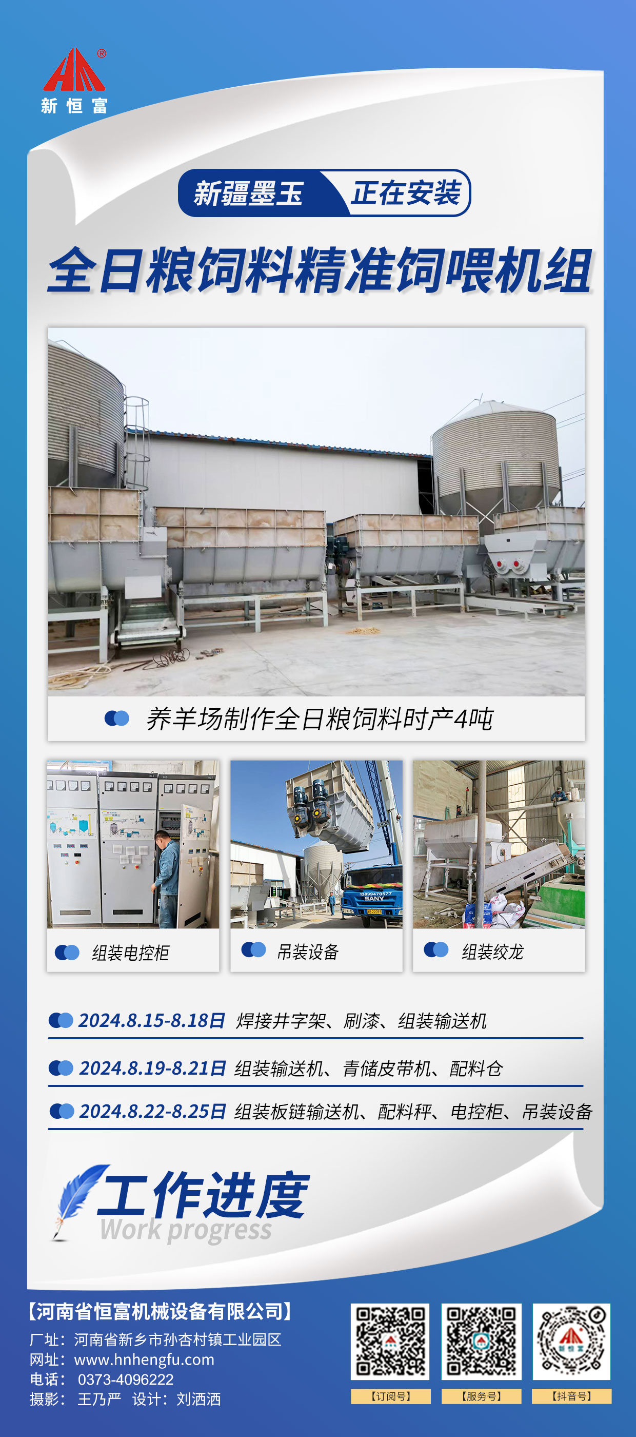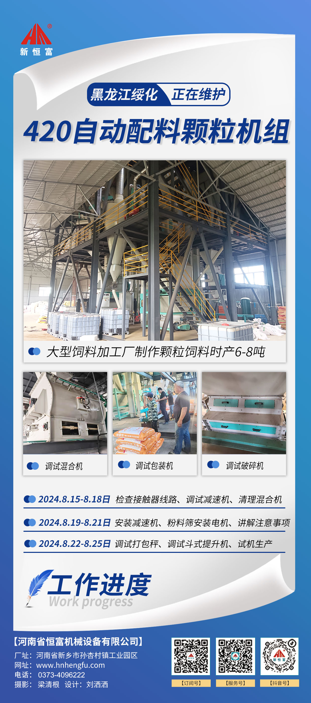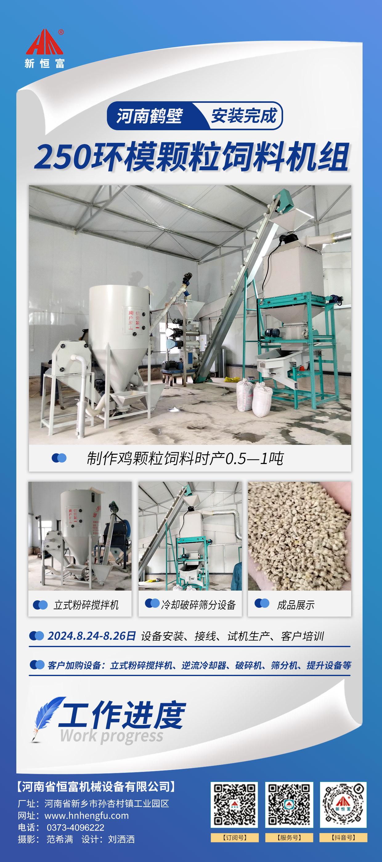河南恒(héng)富機械-成套飼料(liào)加(jiā)工設備安裝進度【2024-07-30】