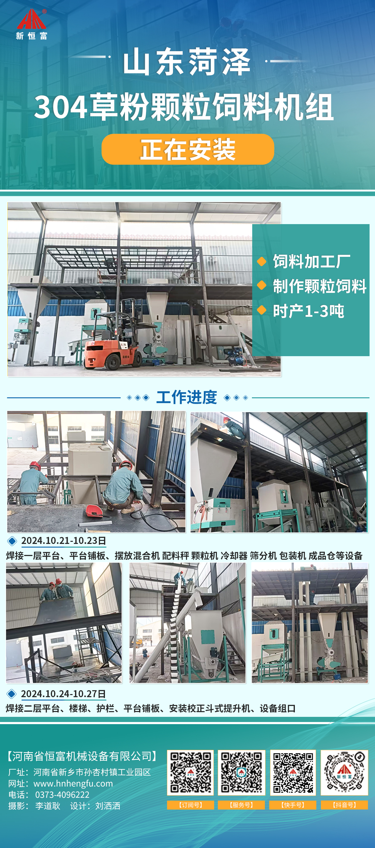 河(hé)南妖精视频機械-成套飼料加工設備安裝進度【2024-10-22】