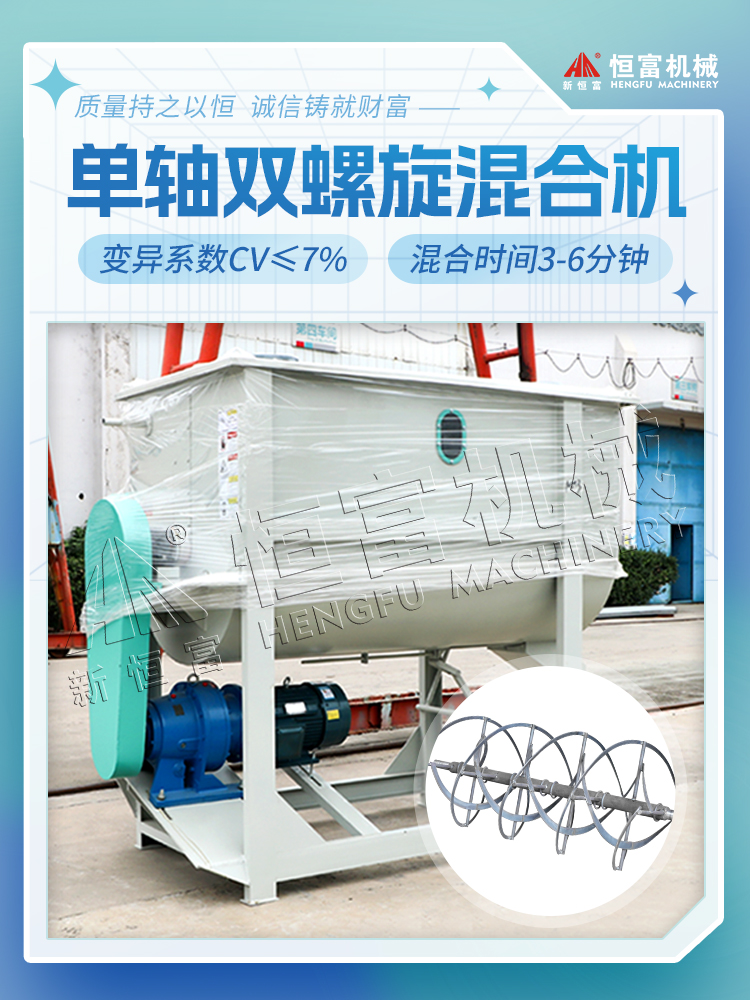 該(gāi)混合機采用內外雙層螺帶(dài)交錯往返式進(jìn)行攪拌混合物(wù)料,具有混合速(sù)度(dù)快、混合均勻(yún)度變異(yì)係(xì)數CV≤7%、可配套液(yè)體添加係統、適用範圍廣泛等特點。