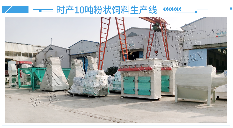 本條生產線是(shì)雙線粉狀飼料加工機組,采用了2台水滴型飼料粉碎機。