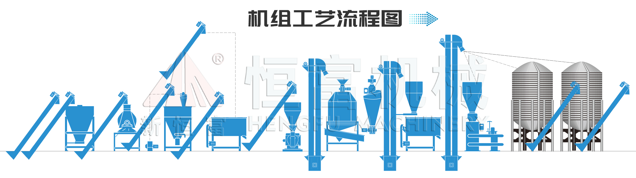 本(běn)套機(jī)組是一套製作粉狀飼料的設(shè)備,前端(duān)搭配水滴式飼料粉碎機(jī),中間配備一個8噸料塔以及(jí)兩個配料秤,後端(duān)搭配了臥式單軸雙螺帶飼料混合機。在原料粉碎的同時(shí),豆粕、麩皮、石粉能(néng)同步(bù)進行稱重(chóng)、配料,隨後所有物料一起進行混合。本條生產線不僅可以實現原料的精準配比,還能提高生產效(xiào)率,降低生產成本。