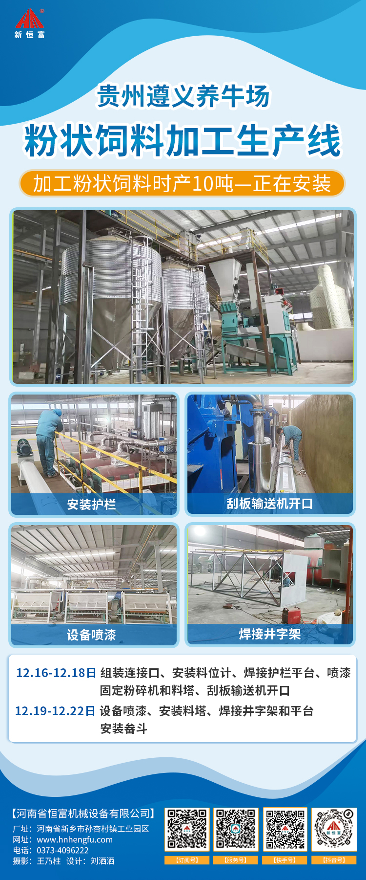 貴州(zhōu)遵義養牛場(chǎng),時產10噸粉狀飼料加工生產線(xiàn)正在安裝。