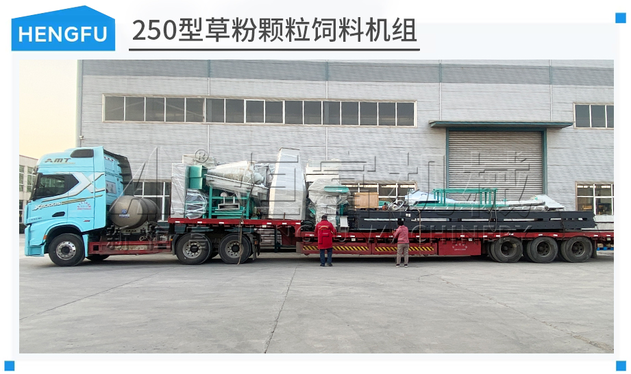 2025年(nián)1月(yuè)14日,由河南(nán)恒(héng)富機械(xiè)生產的時產0.5-1噸草粉顆粒飼料機組,現已裝車完成,順利發往新疆伊犁!