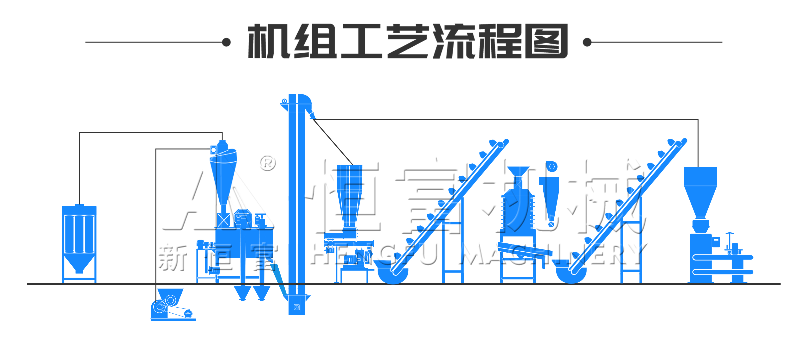 該機組前端配備有多功能飼(sì)料粉碎機(jī),中間搭配有臥式單軸雙螺帶飼料混(hún)合機,後端搭配(pèi)了(le)環模飼料製(zhì)粒(lì)機、逆流式飼料冷(lěng)卻器、飼料振動掛篩以(yǐ)及自動定量飼(sì)料包裝機等。