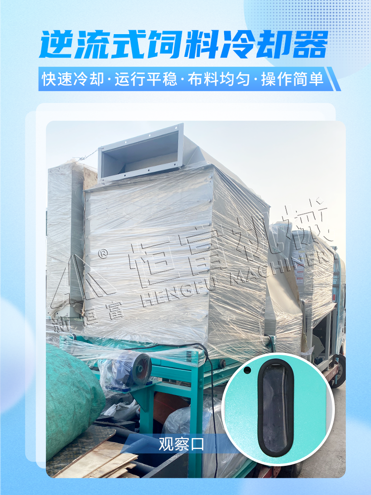 逆(nì)流式飼料冷卻器利用逆流冷卻原理對高(gāo)溫、高濕的顆粒進行冷卻,避免了冷風與熱料直接接觸而產(chǎn)生驟冷現象,因而能防止顆粒產生(shēng)表(biǎo)麵開(kāi)裂。適合(hé)大、中型養殖場、飼料加(jiā)工廠使(shǐ)用。