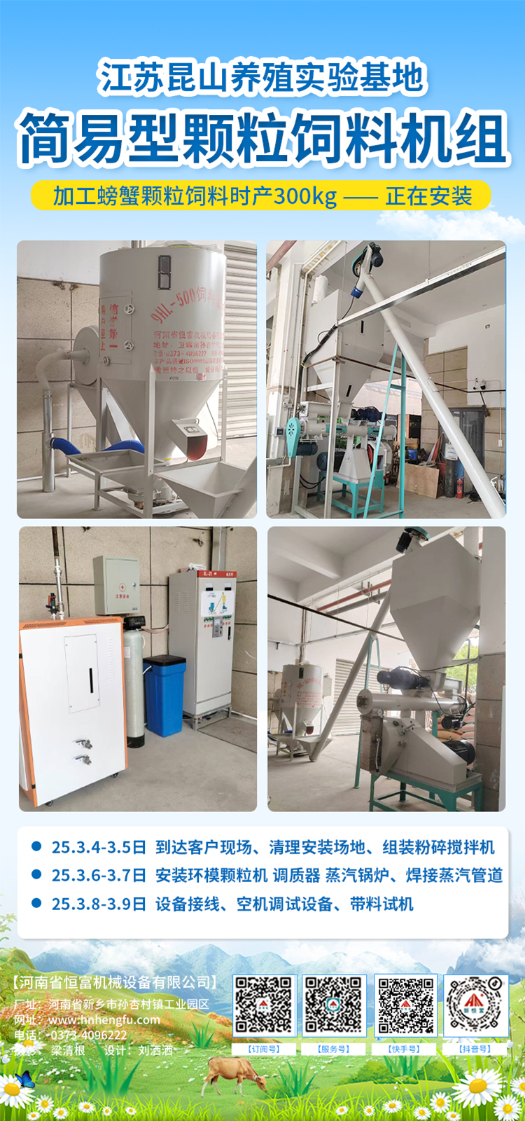 江蘇昆(kūn)山螃蟹研究(jiū)實驗基地,時(shí)產300公斤螃蟹(xiè)下沉顆粒飼料生產線正在安裝。