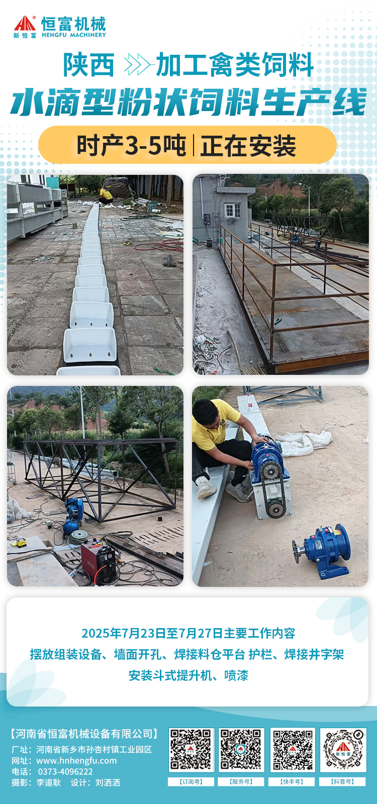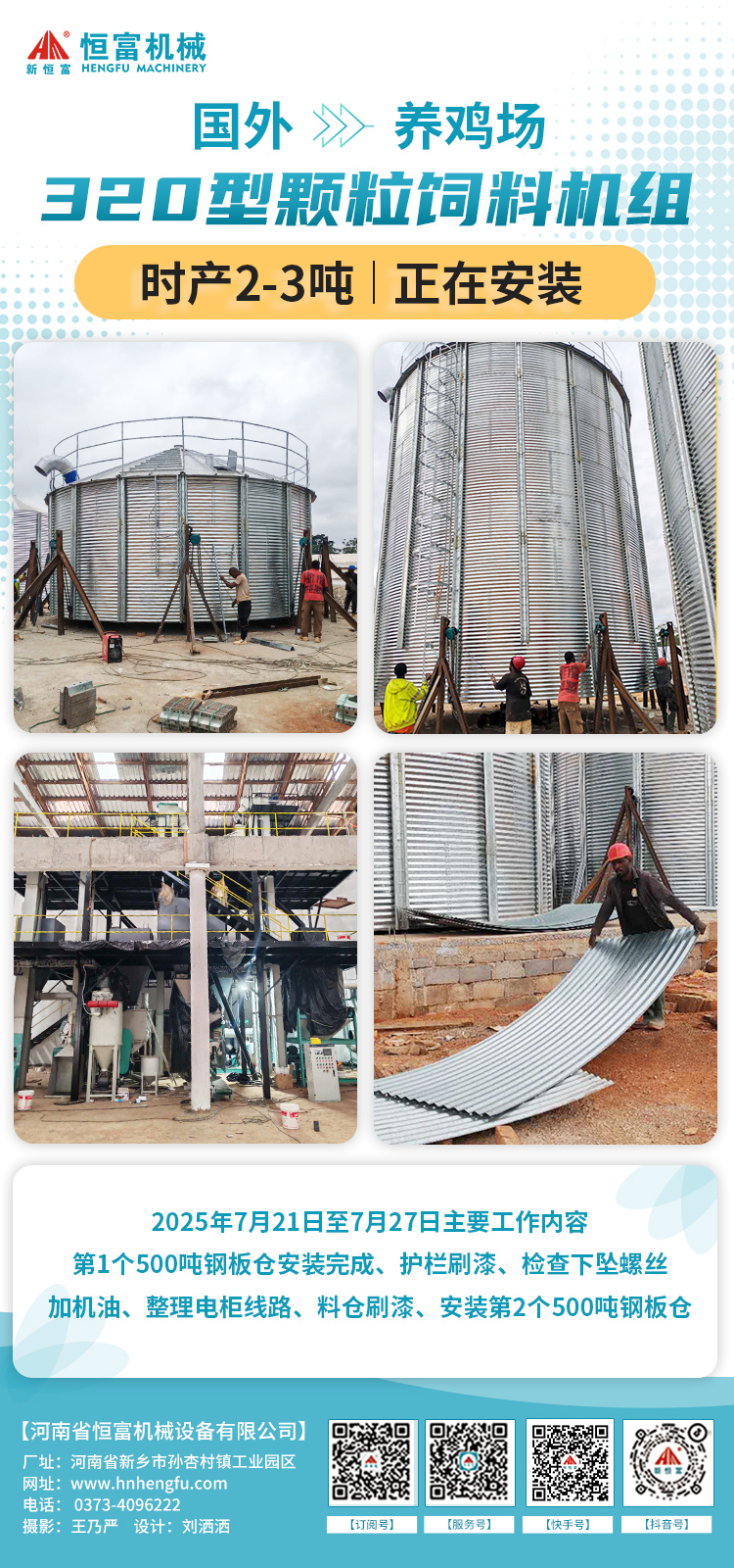 河南恒(héng)富機械(xiè)-成(chéng)套飼料加工設備安裝進度【2025-6-17】