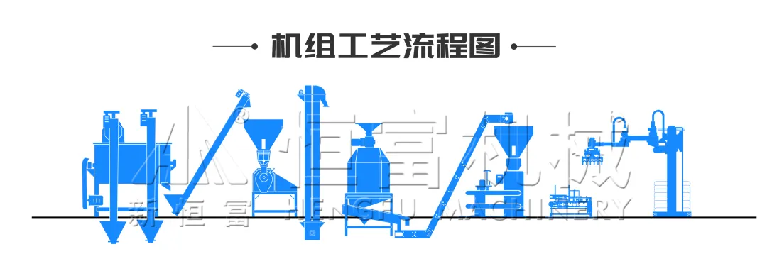 流程(chéng)為先配料(liào)後粉碎:原料經提升(shēng)機送入料塔,再輸送至除雜機除雜後進入配料秤完成(chéng)配(pèi)料;粉碎(suì)後的物料與預混料、添加劑等混合,最終送(sòng)入成品倉。