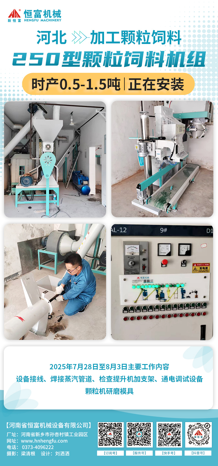 河南恒(héng)富機械-成套飼料加工設備安裝進度【2025-7-15】