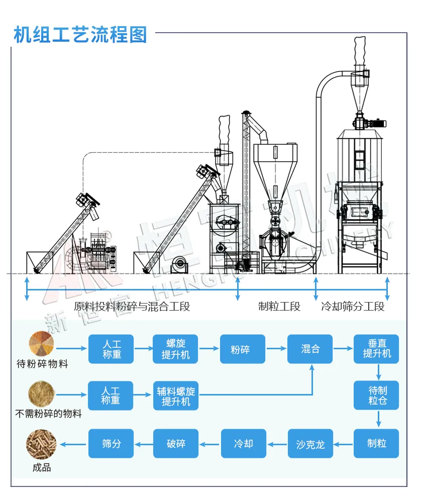 主要設(shè)備有:多(duō)功能飼料粉碎(suì)機、單軸雙(shuāng)螺旋飼料混合機、環模飼料顆粒機、逆流式飼料冷卻器、輥式(shì)飼料破碎機、PLC控製係(xì)統、油液添加係統。