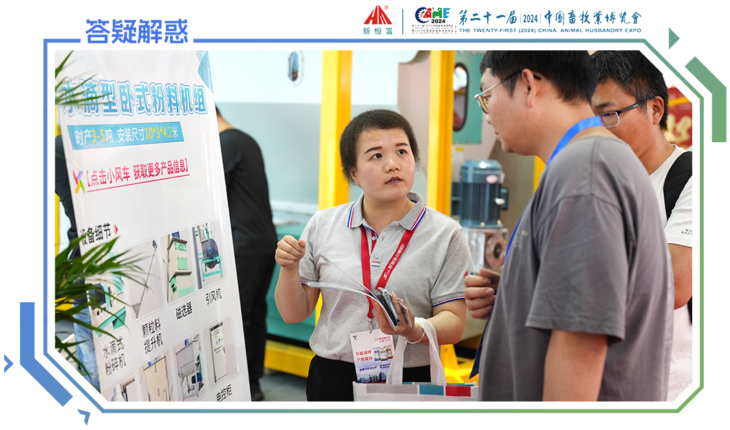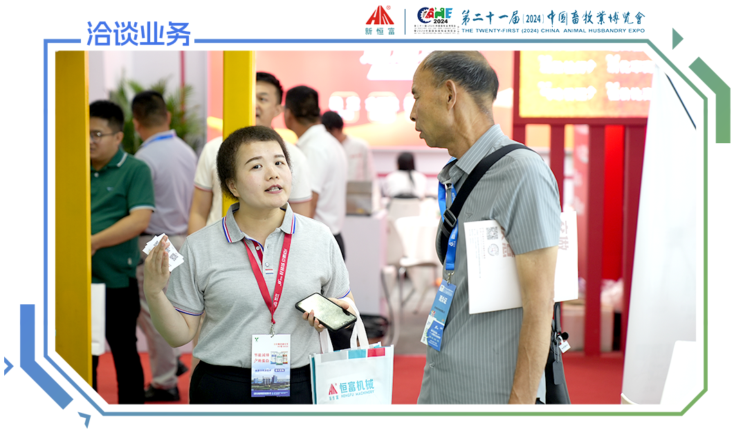 洽談專區內,現場工作人員以飽滿的熱情,接待了來自國內外各地的養(yǎng)殖企業、飼料加工廠、經(jīng)銷商和合作夥伴,並為前來谘詢(xún)的新老朋(péng)友耐心(xīn)講(jiǎng)解(jiě)妖精视频機械攜帶的技術(shù)與產品。