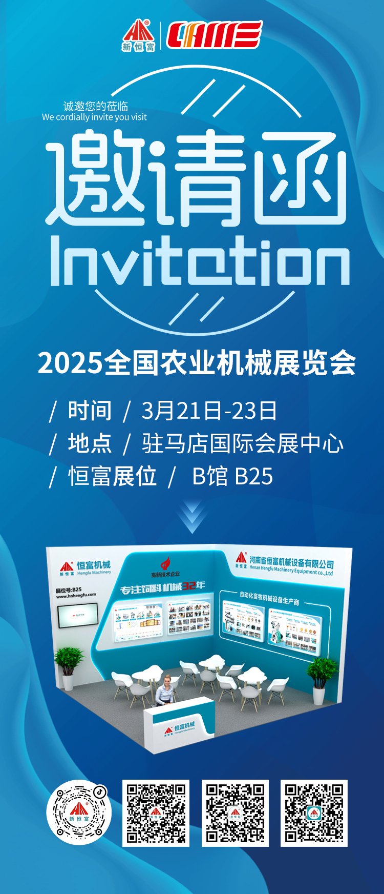 2025全國農業(yè)機械展覽會(huì)將於2025年3月(yuè)21日-23日在駐馬店國際會展中心舉辦。