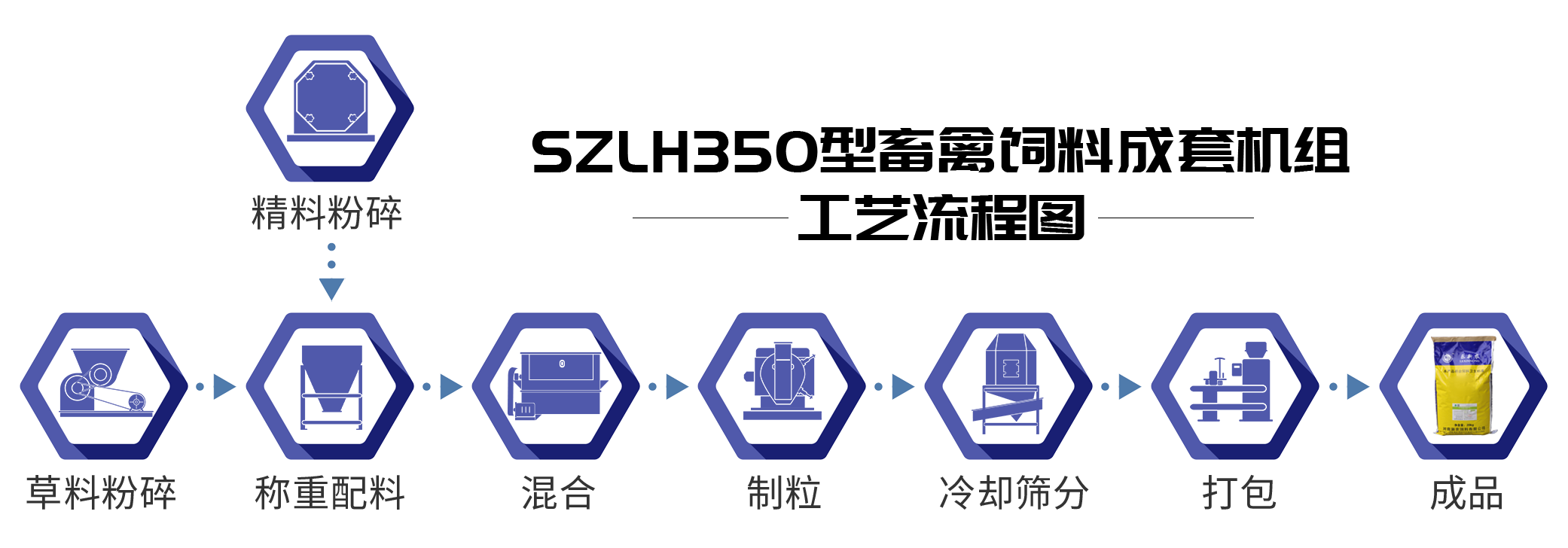 環模顆粒機:SZLH350型,功率55kw,采用優質環模和壓輥,用途(tú)廣泛,占地麵積小,出粒優質,適用於大中型養(yǎng)殖場和小型飼料加工場的動物顆粒飼料生(shēng)產。顆粒(lì)飼料的含水率基(jī)本為製粒前物料的含水率,更利於儲存。
