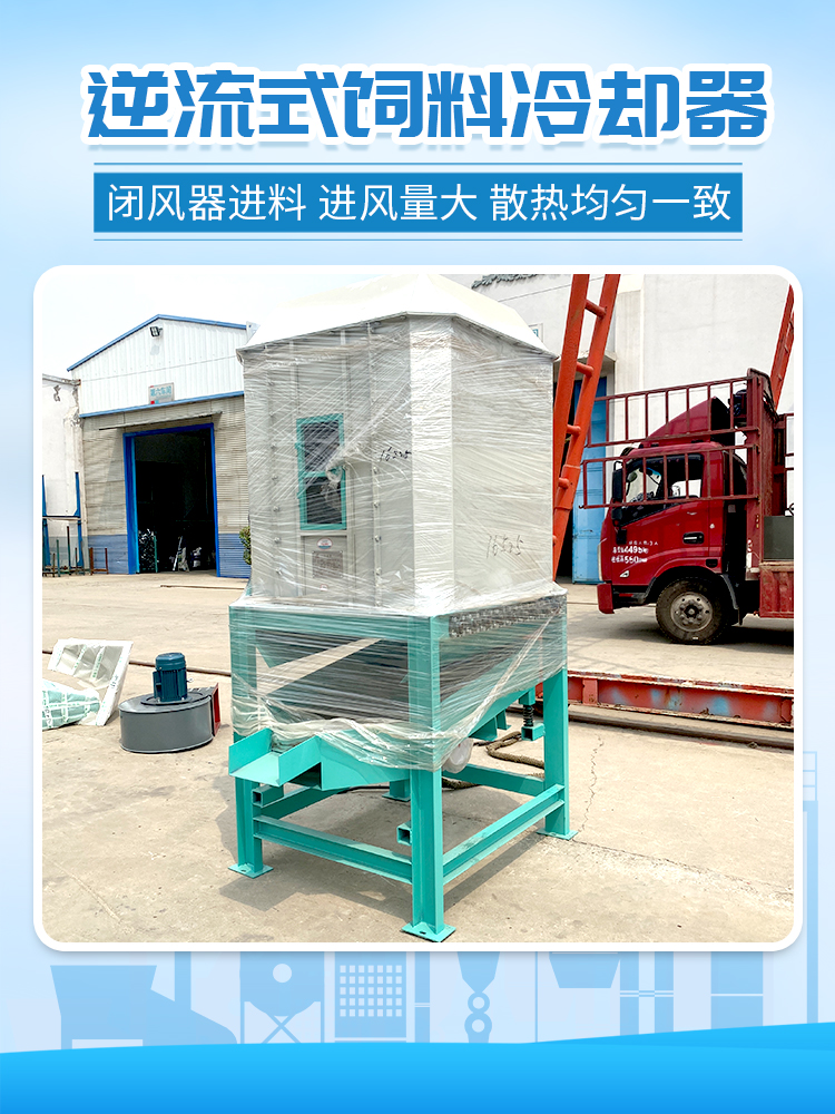 利用逆流冷卻原理對高溫、高濕(shī)的顆粒進行冷卻,避免了冷風與熱(rè)料直接接觸而產(chǎn)生驟冷現(xiàn)象,因而能防(fáng)止顆粒產生表麵開裂。適用(yòng)於各種顆(kē)粒物料的冷卻,如秸稈(gǎn)顆粒料(liào)、牧草顆粒料、膨化(huà)飼料等。