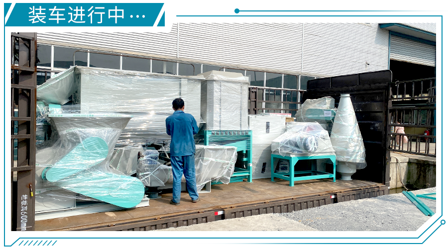 河南駐馬(mǎ)店--時產2噸臥式粉狀飼料加工機組,已裝車完成,順利(lì)發車
