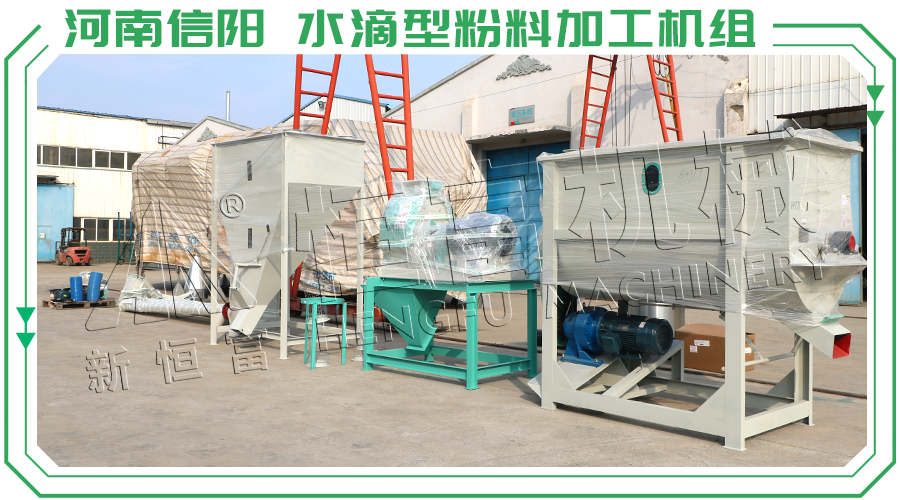 該機(jī)組搭配(pèi)的設備有水滴式飼料(liào)粉碎機、臥式螺帶飼料混合機、中間配有(yǒu)獨立緩衝倉。可以使飼料粉碎機和(hé)飼料混合機始終處於一個連續高效工作的狀態,進一(yī)步提高(gāo)生產效率。