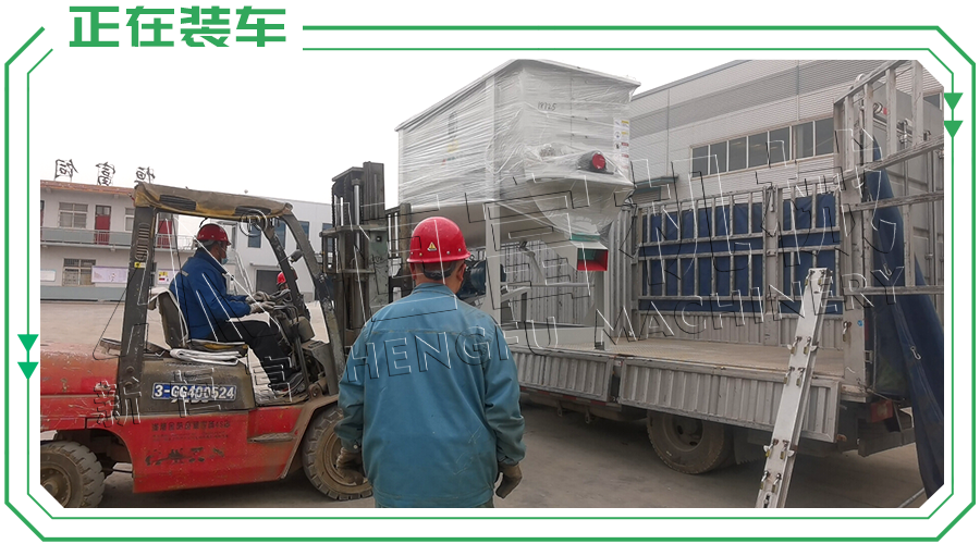 內蒙古赤峰市(shì)巴林左旗--時產3-5噸粉狀飼料(liào)加工機組,已裝車(chē)完成,順利發走!
