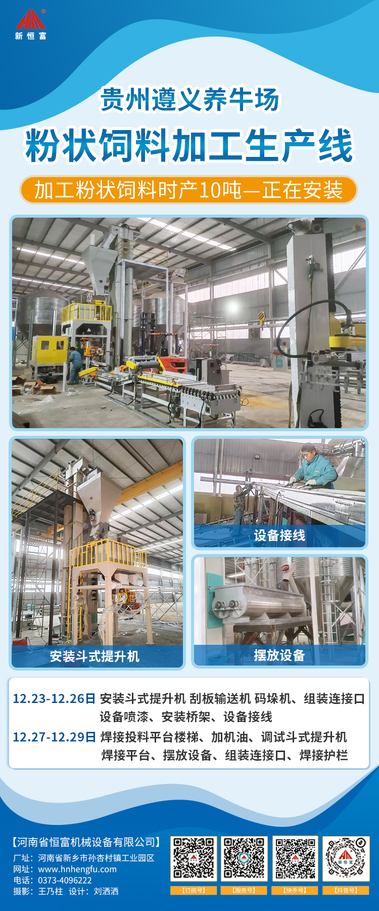 貴州遵義養牛場,時產10噸粉狀飼料加工生產線正在安裝。