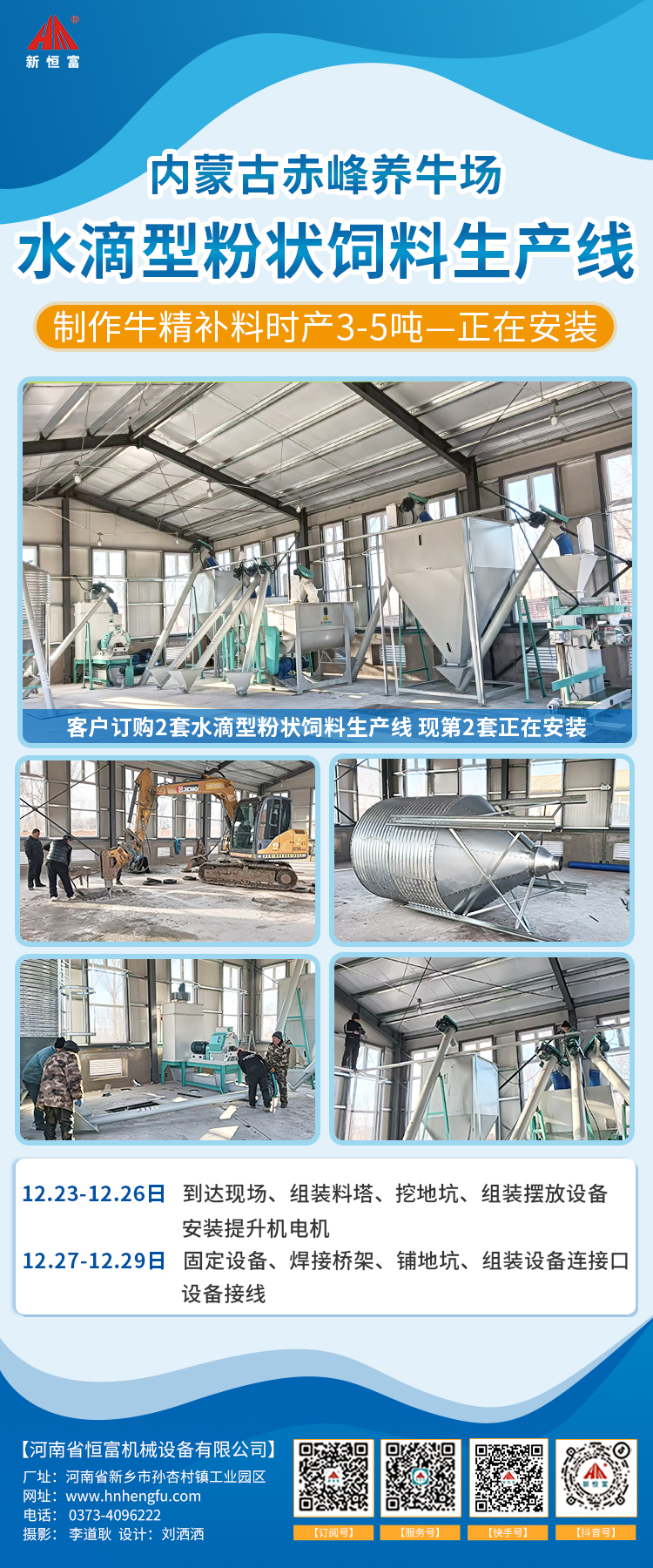 內蒙古赤峰養牛場,時產3-5噸粉狀飼料生(shēng)產線正在安裝。