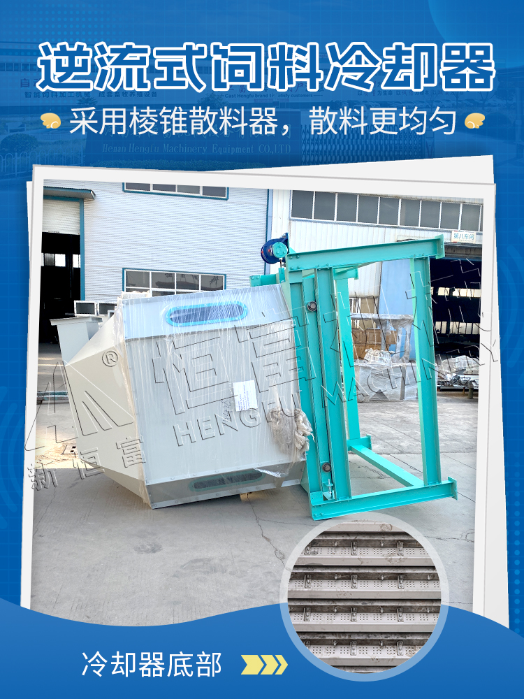 逆流式飼料冷卻器主要用於(yú)製粒工段顆粒飼料(liào)的冷卻。