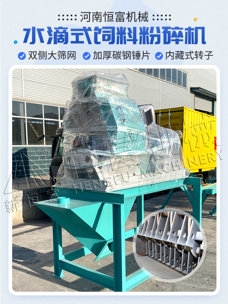 水滴式係列粉(fěn)碎機可粉(fěn)碎(suì)各種顆粒(lì)狀飼料原料,如玉米、高粱、麥(mài)類、破碎後的餅類等物(wù)料(liào),可粗粉也可細粉。