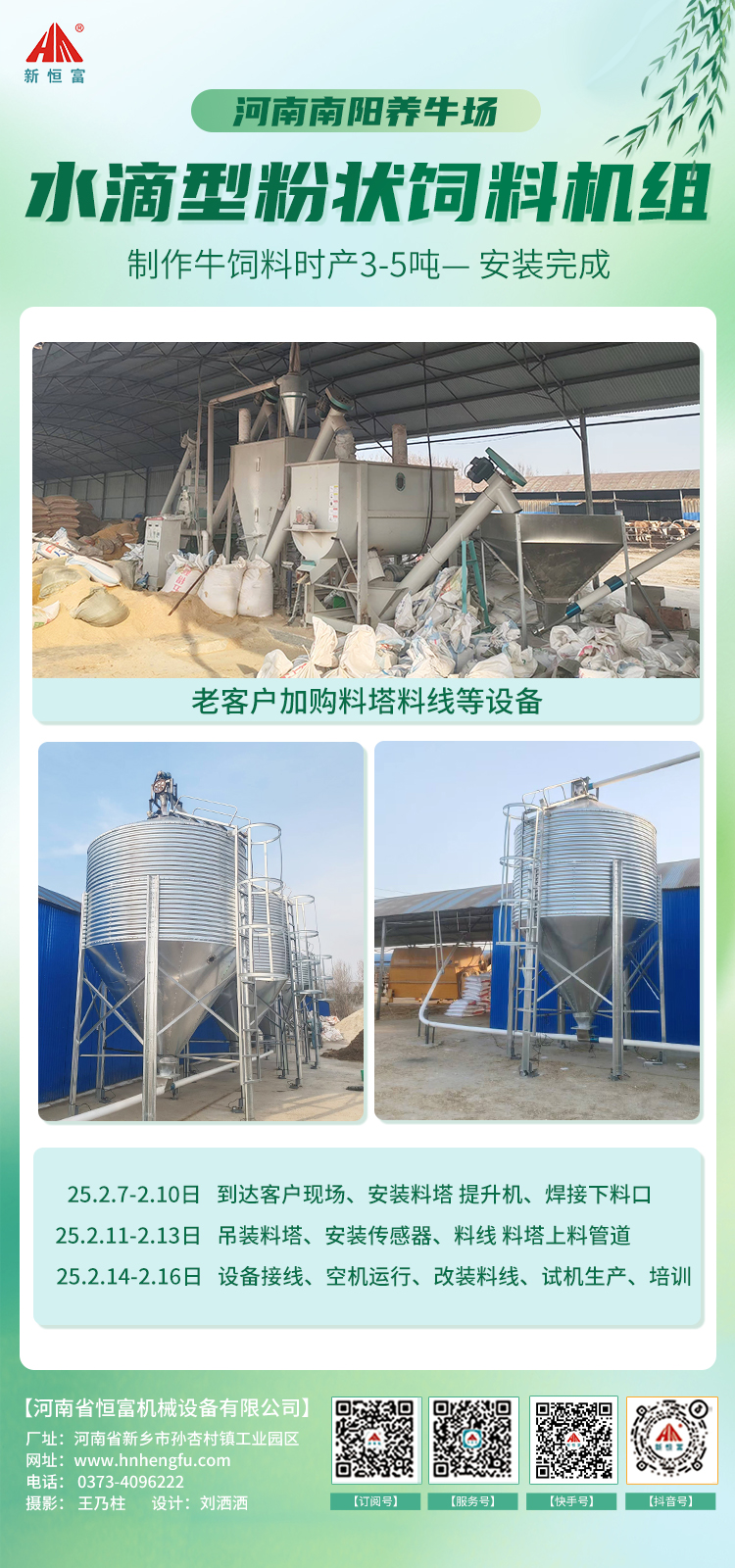 河南南陽養牛場,時產3-5噸粉狀飼料生(shēng)產線安裝完成(chéng)。
