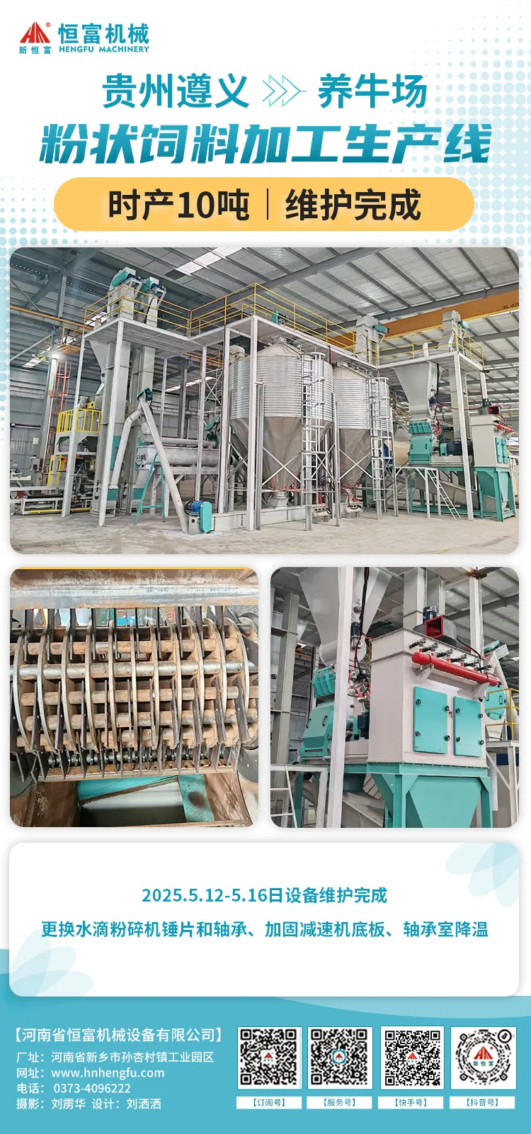 貴州遵義養牛場,時產10噸粉(fěn)狀飼料加工生產線設備維護完成。
