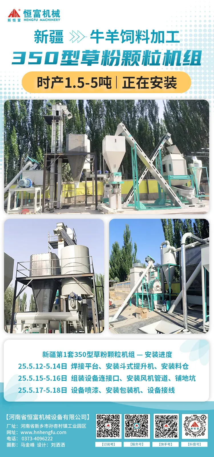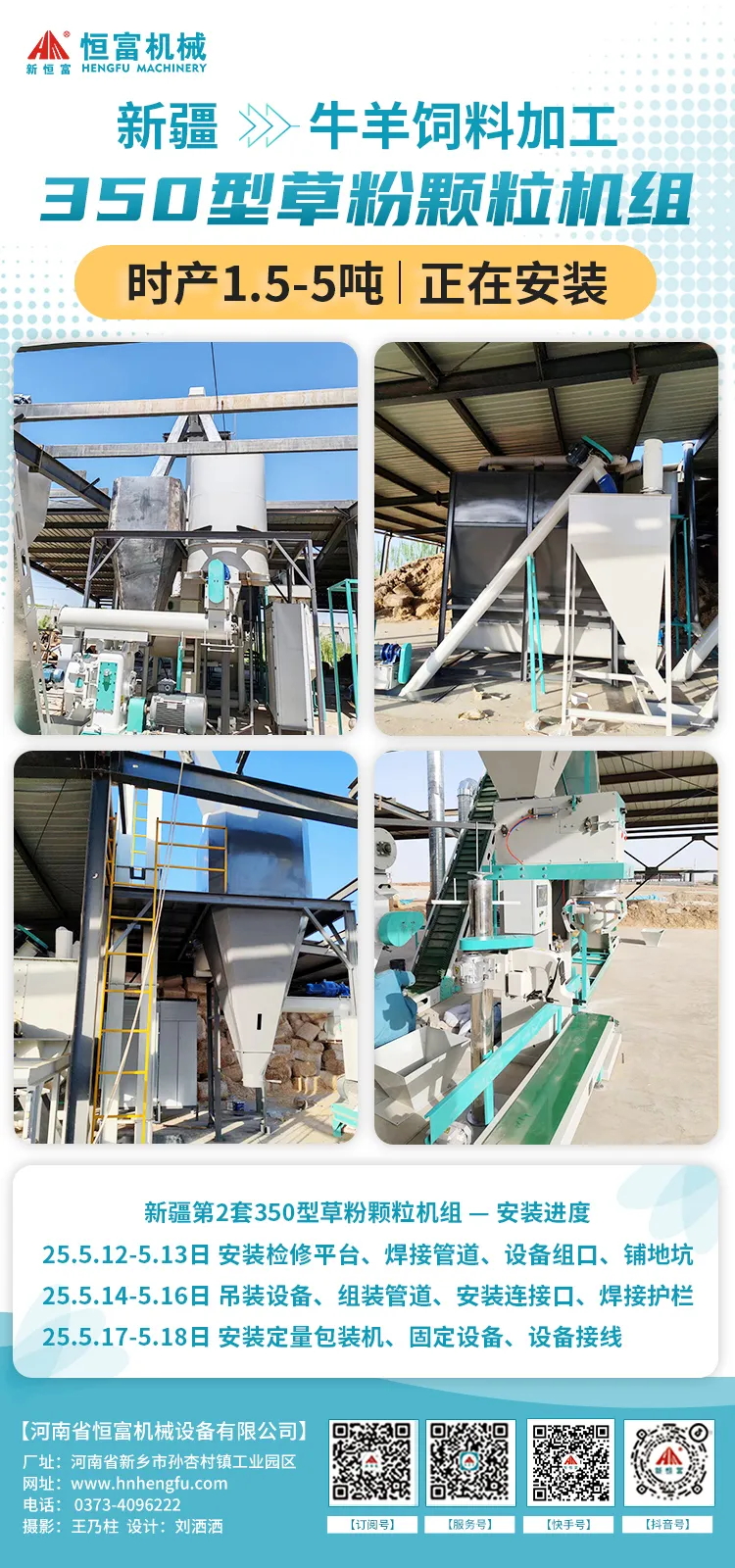 河南恒(héng)富機(jī)械-成套飼料加工設備安裝進度【2025-5-13】